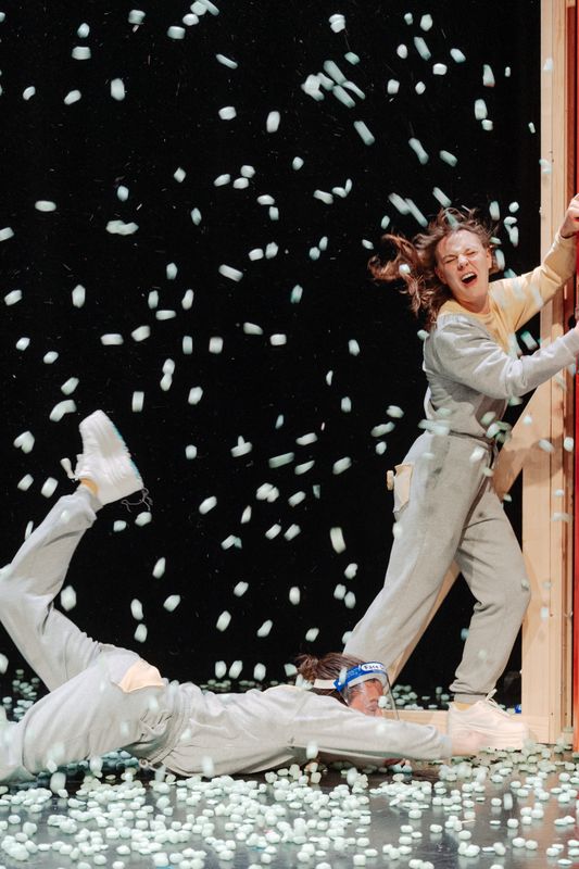 Een voorstelling die spettert en knettert, die subtiel en ingetogen is, die slapstick en slowmotion met schwung combineert, die een enorm warm spelplezier uitstraalt.