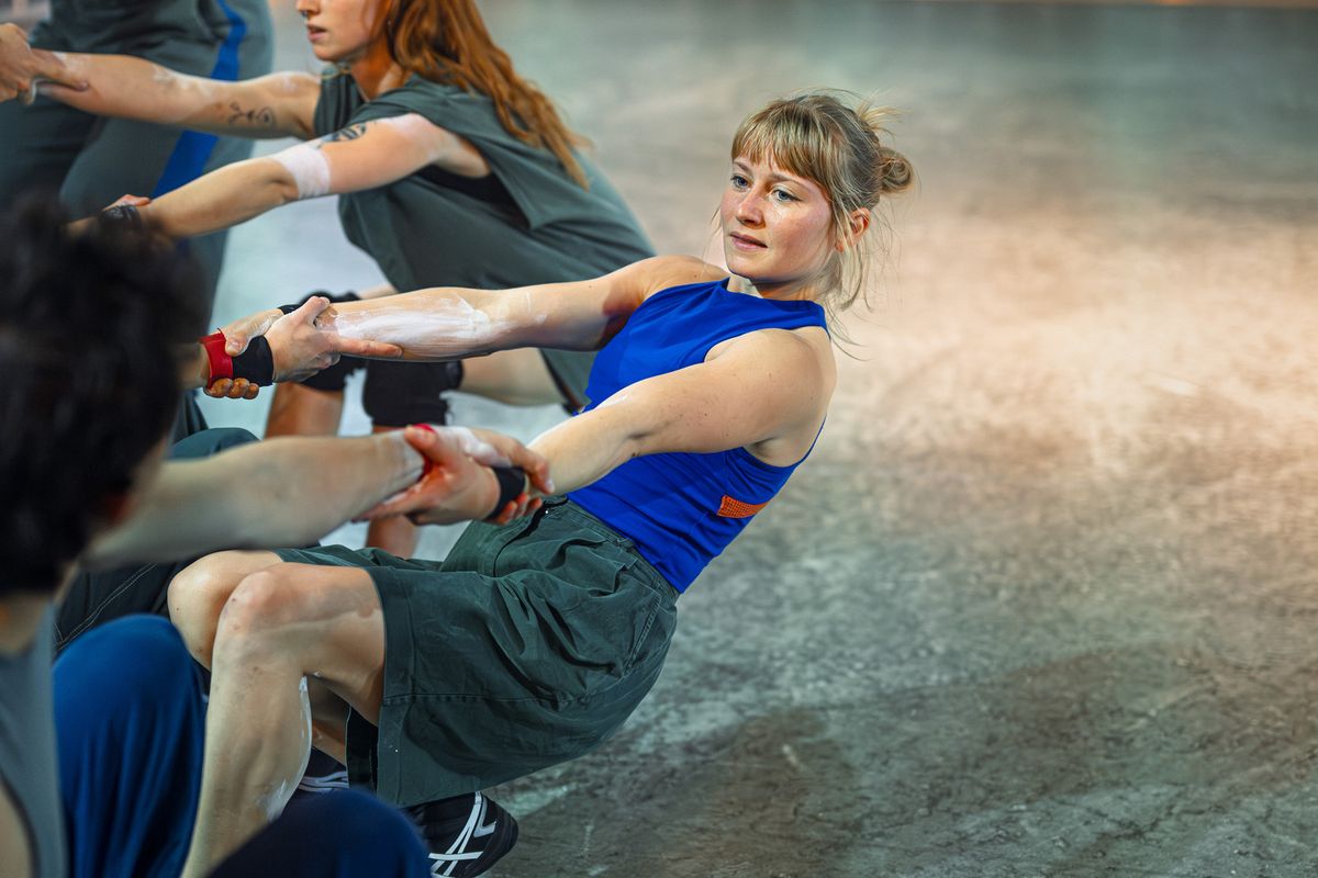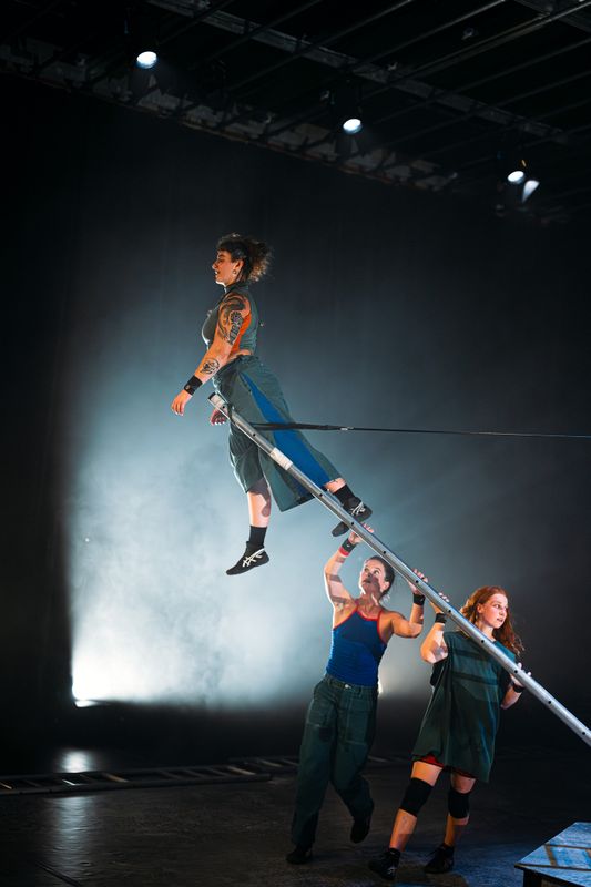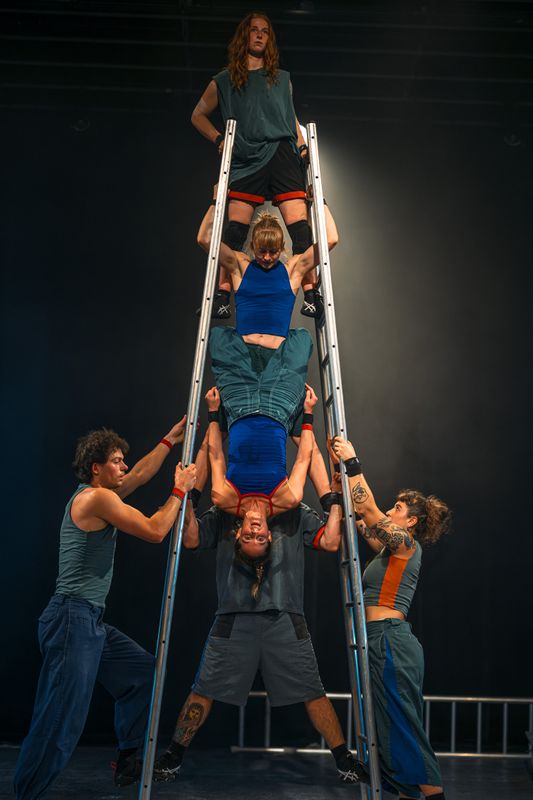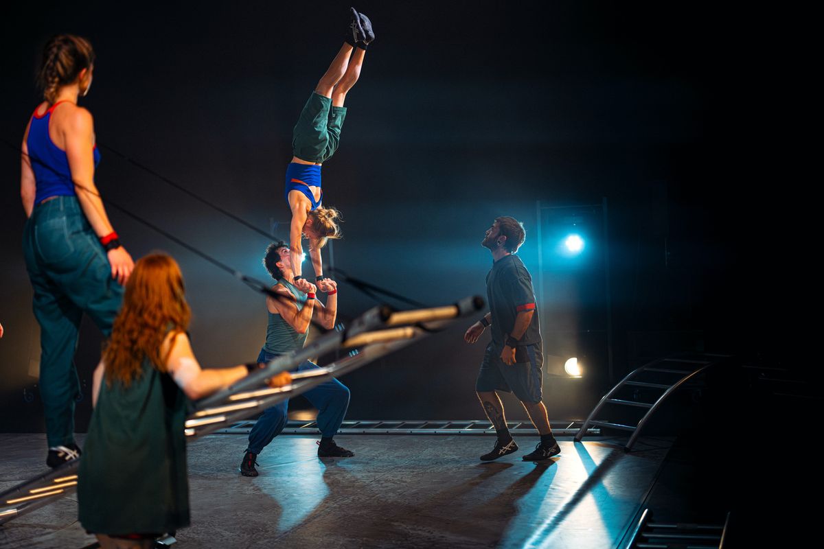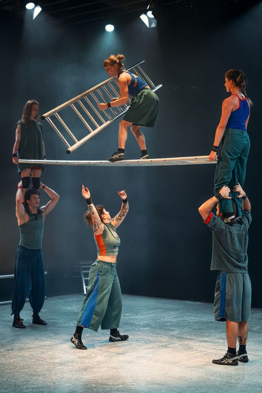 Ogenschijnlijk voeren ze de acrobatische, wervelende toeren moeiteloos uit. Ze bouwen gezamenlijk aan een sculptuur van lichamen, gooien zich van grote ladderhoogte in elkaars armen en doen het publiek even duizelen door boven hun hoofden rond te zwaaien. De interactie met de toeschouwers is plezierig; ze kijken ons aan alsof ze willen zeggen ‘het komt allemaal goed’. - Theaterkrant