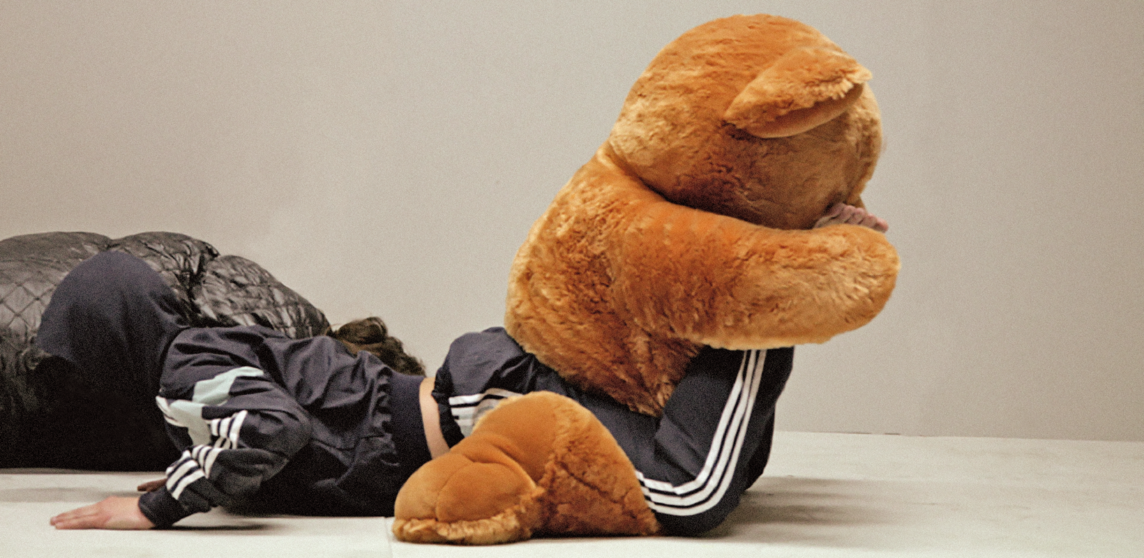 Big Bears Cry Too is een voorstelling over de kwetsbaarheid van de mens in het grote, ongrijpbare universum. Een reeks voorwerpen komt letterlijk de scène op gevlogen en zeggen iets over het individu in die wereld. Een groot, te groot, hart uit plastic dat enkel in te tomen valt door er een klein beetje lucht uit te laten. Een gigantische pil die je gelukkiger zou moeten maken, maar je in een toestand brengt waarin je jezelf niet meer herkent. Een beer die slachtoffer wordt van zijn té grote cuteness. We landen in een universum van gekleurde regen en oneindige tekeningen.