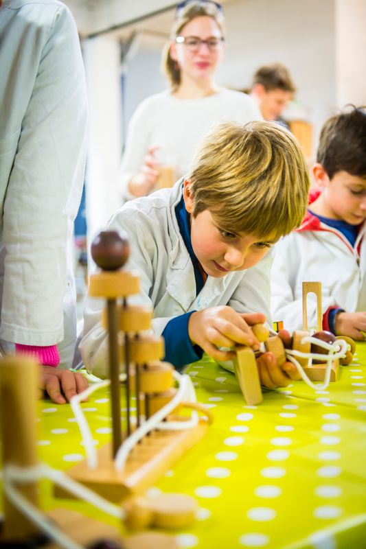 Met bamboestokken en elastiekjes bouw je in team een brug. Wie de sterkste brug bouwt, krijgt een ingenieursgereedschap mee naar huis.