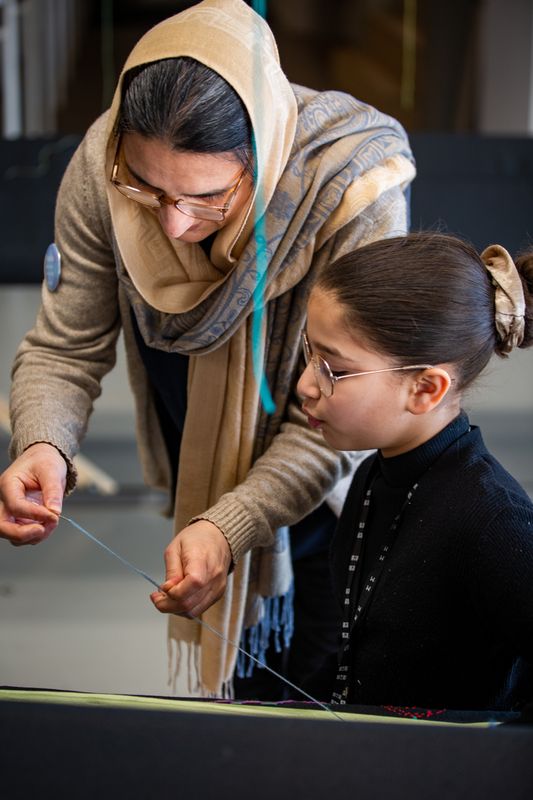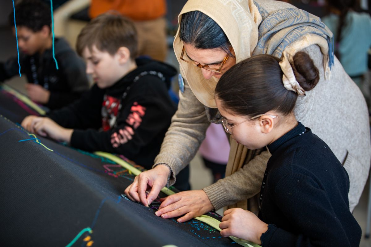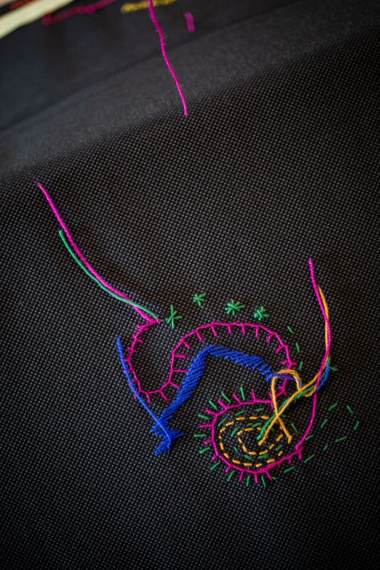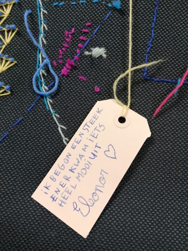 Ik ben kleine streepjes aan het borduren. Voor mij zijn dat kleine voetstapjes. Omdat mensen hun eigen pad moeten kunnen volgen en zelf mogen kiezen wat ze willen doen.’