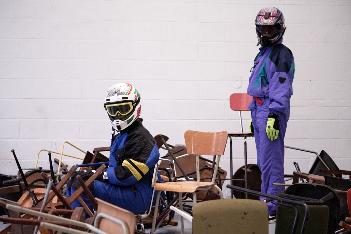 De inventieve performance In between spaces nodigt je uit om telkens opnieuw een eigen plek te zoeken. Nu eens zittend, dan weer staand. Je wordt deel van een constant veranderende stoelensculptuur waarin je relatie tot de ander in vraag wordt gesteld.
