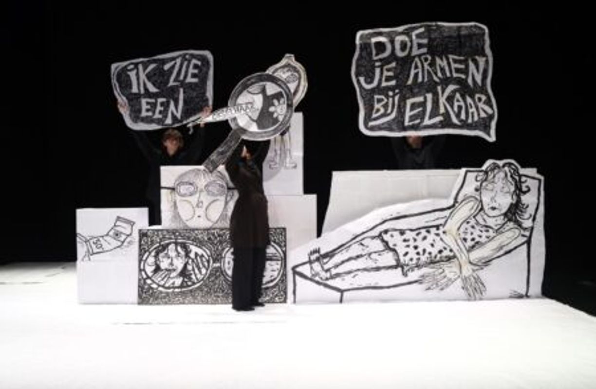 Bonjour Mademoiselleke is een graphic-novel voorstelling met 2D en 3D figuren. Een voorstelling over misgendering, frietjes bestellen en moeders die uit telefoons komen.