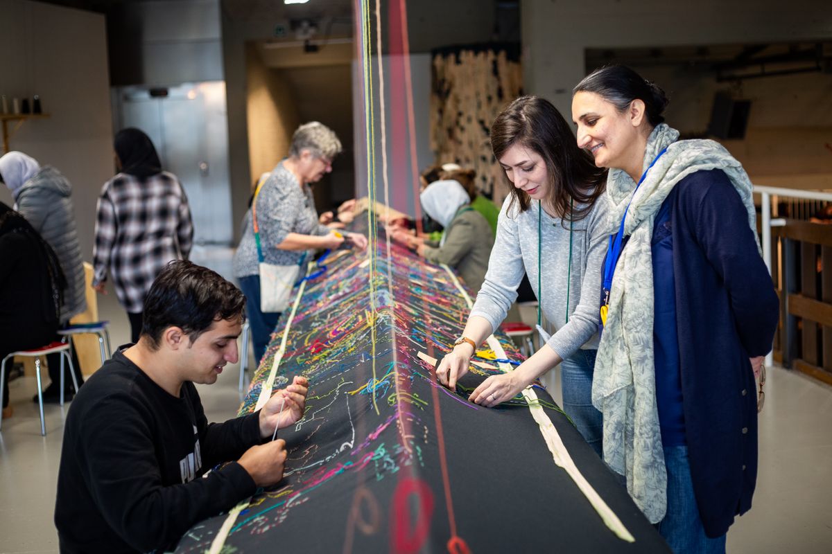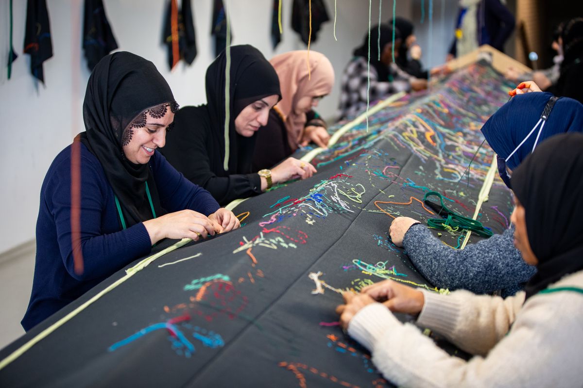 meester-borduurder: Mina Dehghani, Ramzia Hasan, Nadia Mohmand, Iryna Pivtorak
