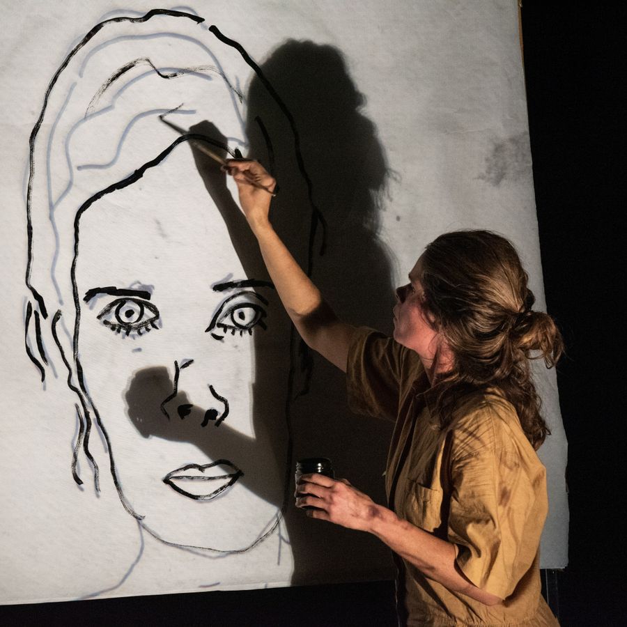 In deze solo graaft Claes terug in haar eigen familiegeschiedenis aan moederskant, toen haar oma tijdens de oorlog maandenlang opgesloten zat in het Duitse concentratiekamp Ravensbrück. Het bijzondere aan die hele vertelling: er valt niet één woord. Met grote vellen wit papier, een schaar, wat kwasten en een klassieke overheadprojector schetst en animeert Claes de hardnekkige impressies die zijn blijven hangen: de honden, de rijdende trein, de haveloze mensen, de maan.