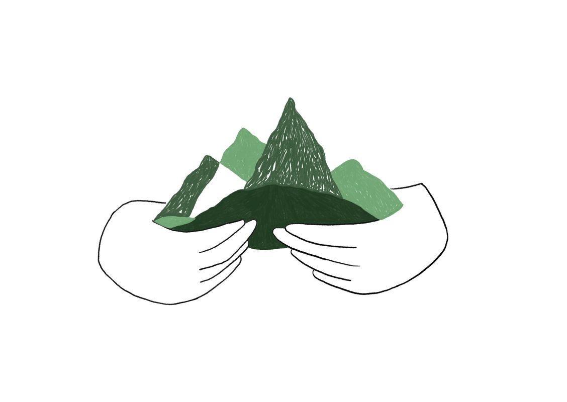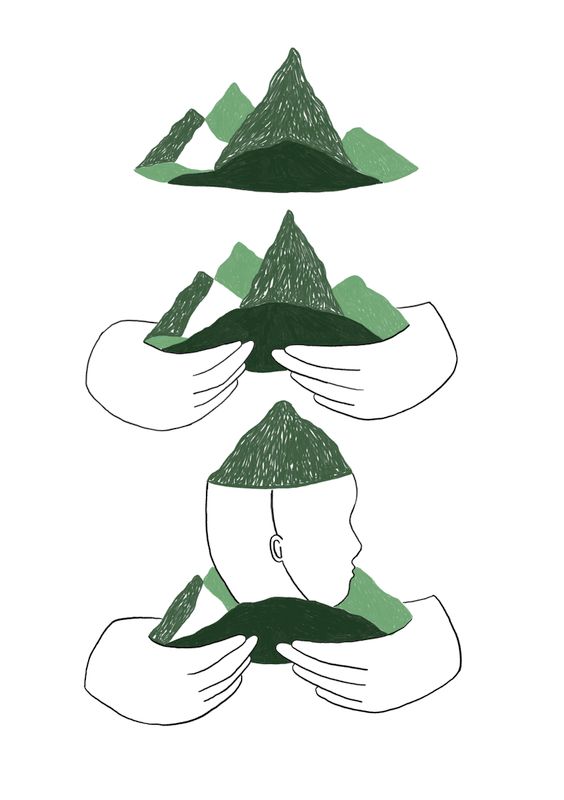 Of misschien moeten we de rollen eens omdraaien, de aarde draagt ons al zo lang. Misschien moeten wij de aarde worden, zodat de aarde even kan rusten. Zee zijn, berg zijn, weiden vol koeien zijn, bos zijn, ijskappen zijn en vulkaan zijn...