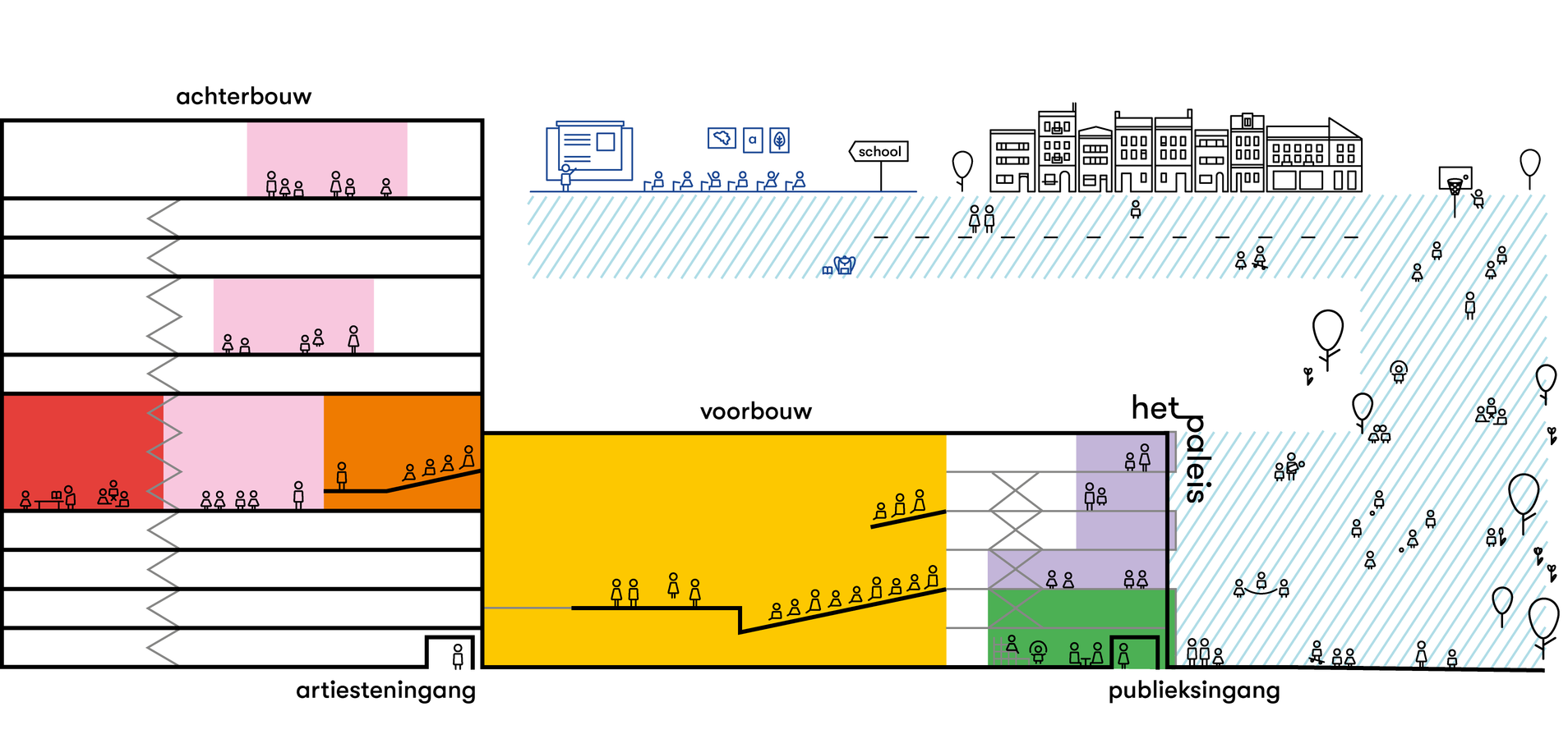 Op deze pagina visualiseren we de werking van hetpaleis aan de hand van een inkijk in het gebouw. Klik op onderstaande blokjes en geniet van foto- en videomateriaal. Onder het blokje zakelijk vind je de analytische begroting, het huishoudelijk reglement, het organigram, de afsprakennota tussen de directie en de raad van bestuur en een overzicht van de maatregelen die hetpaleis neemt in verband met duurzaamheid.