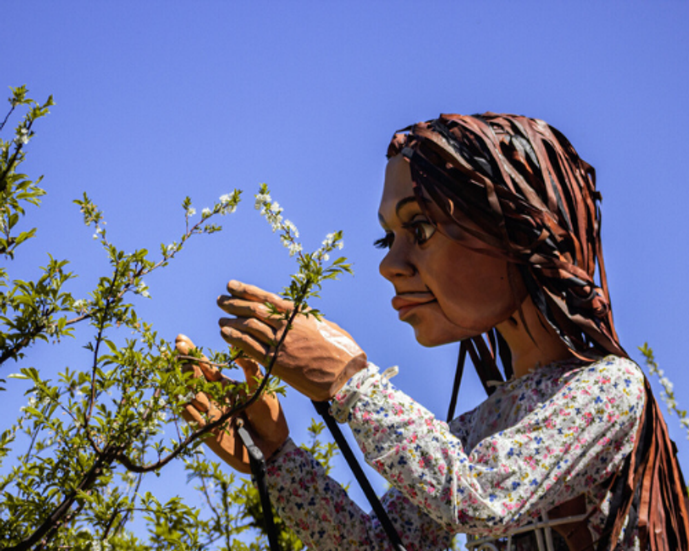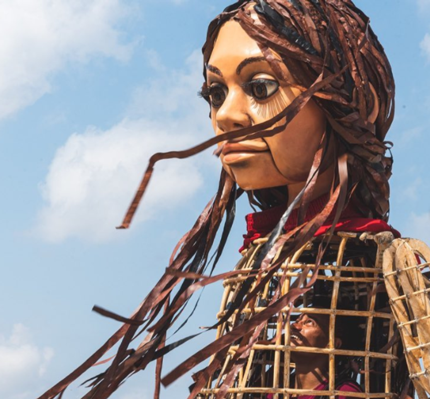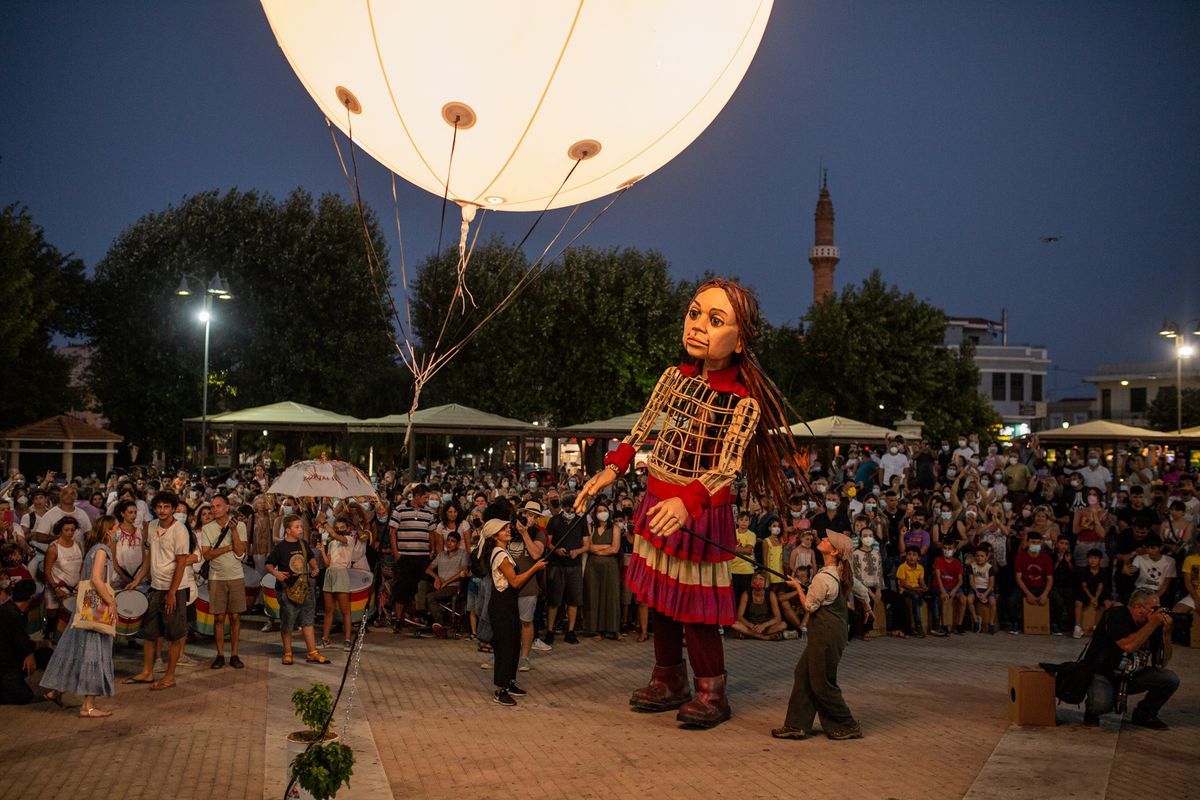 Kleine Amal - een reuzenpop die een Syrisch vluchtelingenmeisje verpersoonlijkt - kwam naar België in oktober 2021. Kleine Amal vertegenwoordigt de 32 miljoen kinderen die ook noodgedwongen hun huis hebben moeten verlaten.