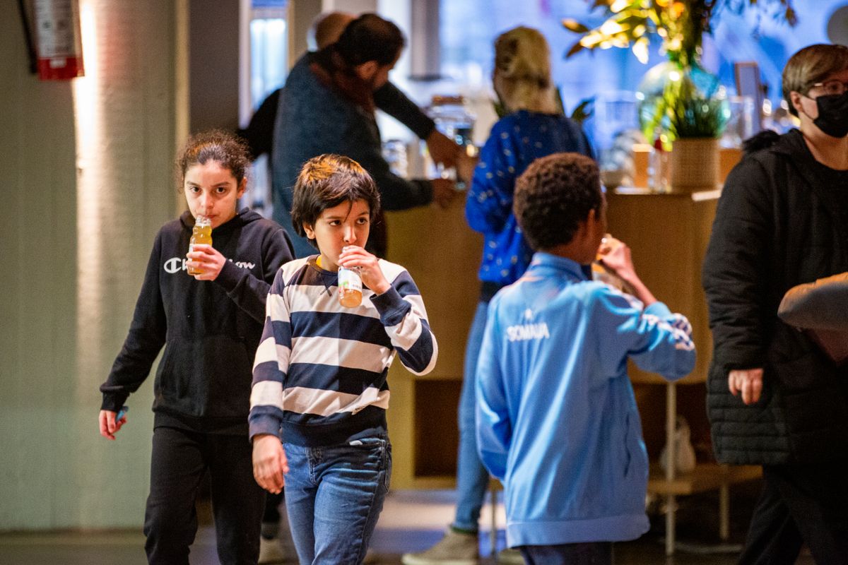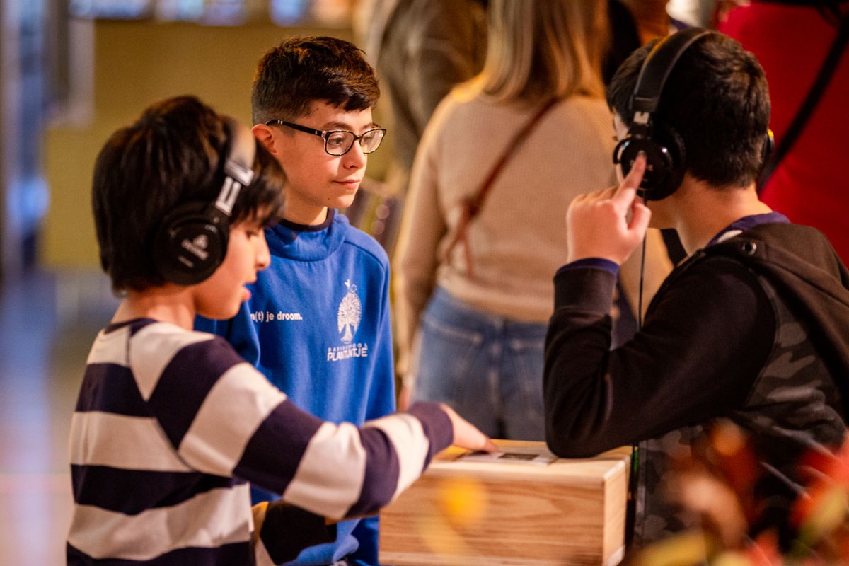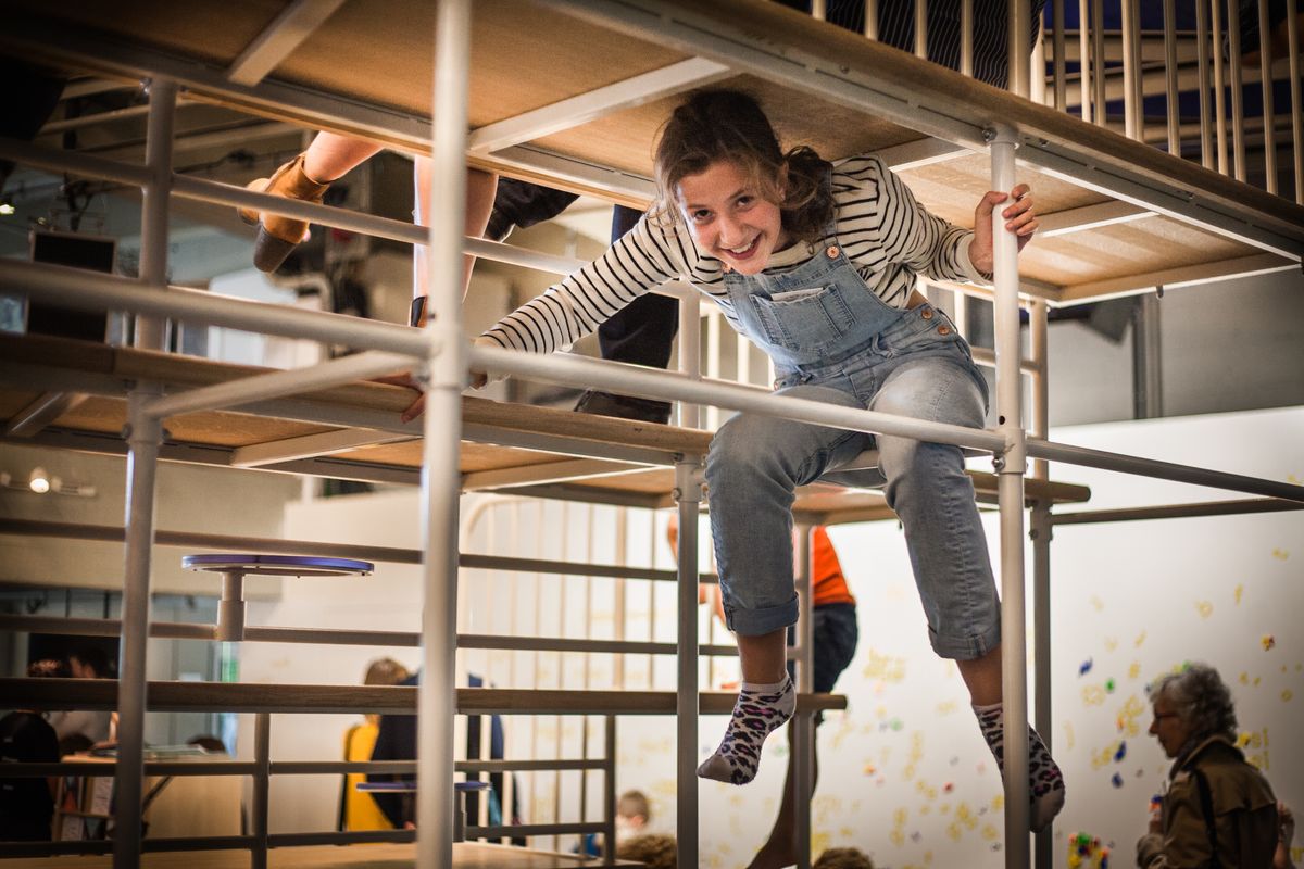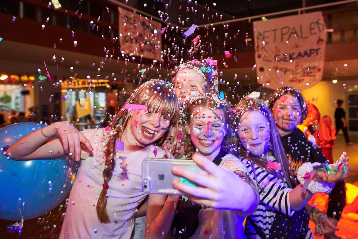 hetgeluk: babbelen, verzamelen, ontmoeten, vergaderen, feesten, drinken, eten. hetgeluk grenst aan de foyer: een binnenspeelplein met hoeken om te lezen, tekenen, ravotten of hangen. Op het plein: een buitenterras. Vele kinderen betreden langs hier voor het eerst hetpaleis.