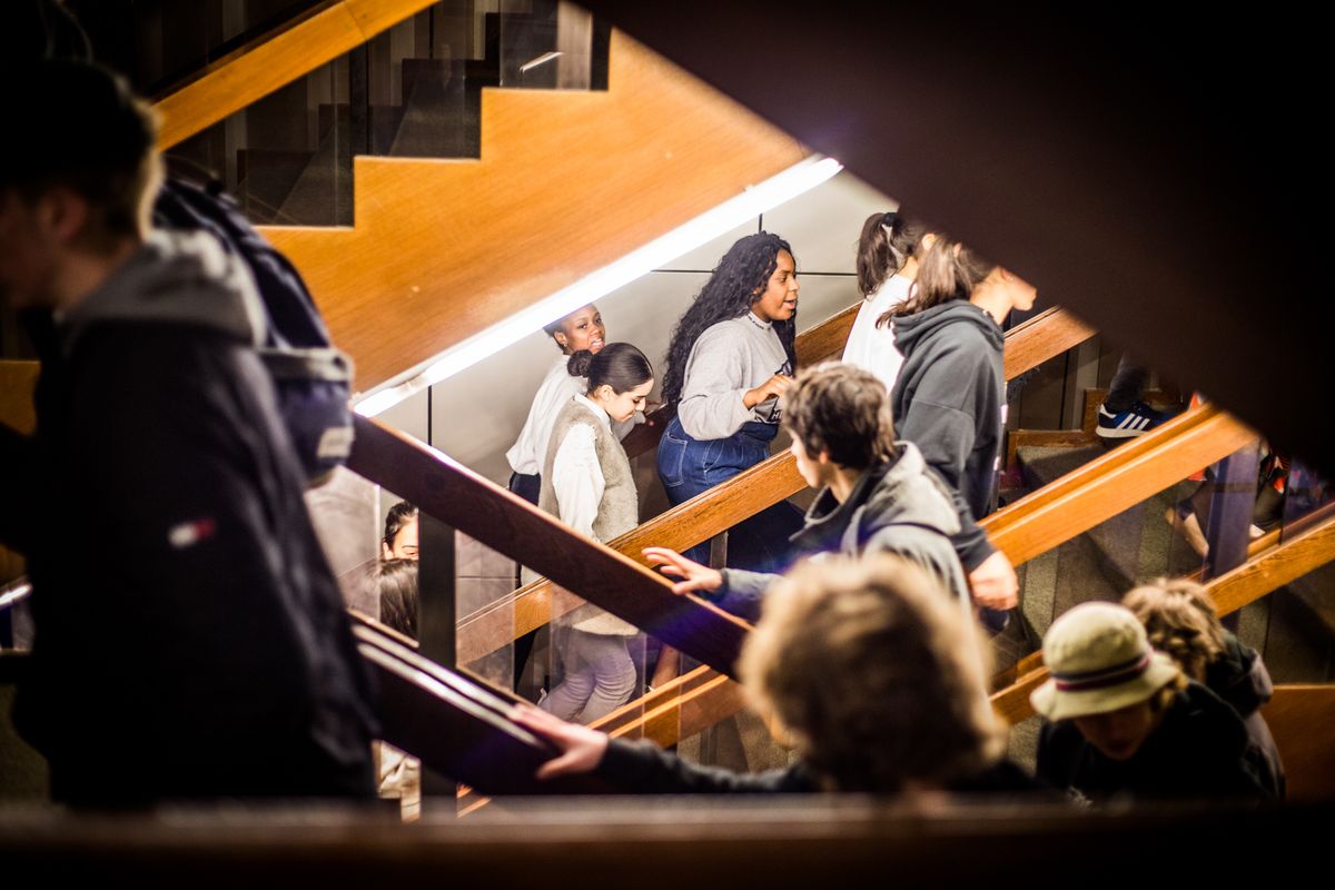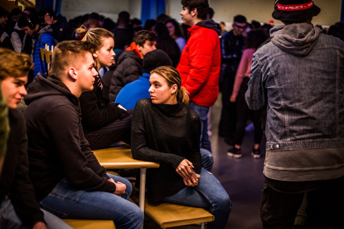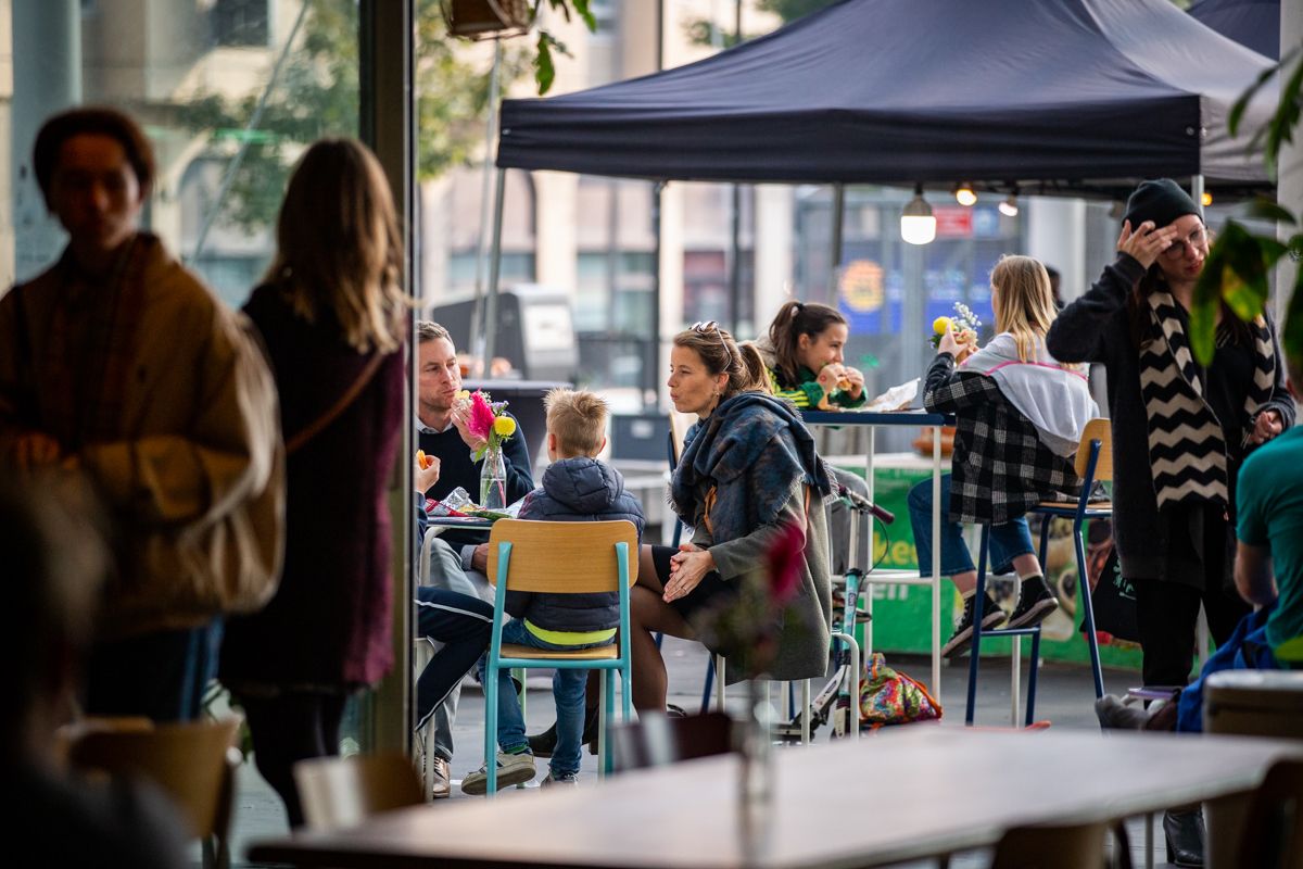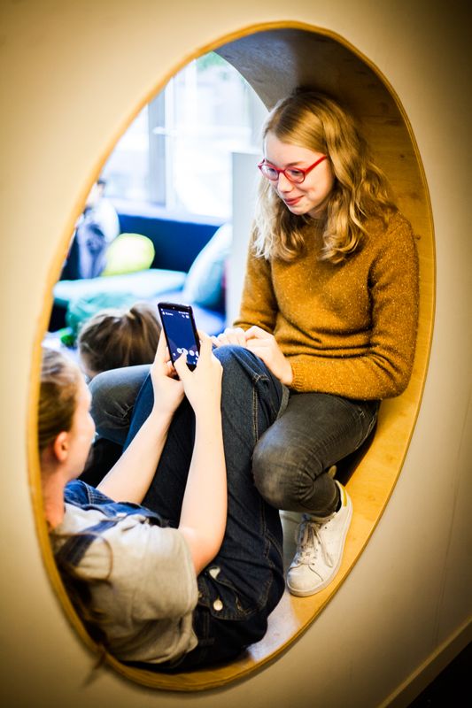 hetgeluk: babbelen, verzamelen, ontmoeten, vergaderen, feesten, drinken, eten. hetgeluk grenst aan de foyer: een binnenspeelplein met hoeken om te lezen, tekenen, ravotten of hangen. Op het plein: een buitenterras. Vele kinderen betreden langs hier voor het eerst hetpaleis.