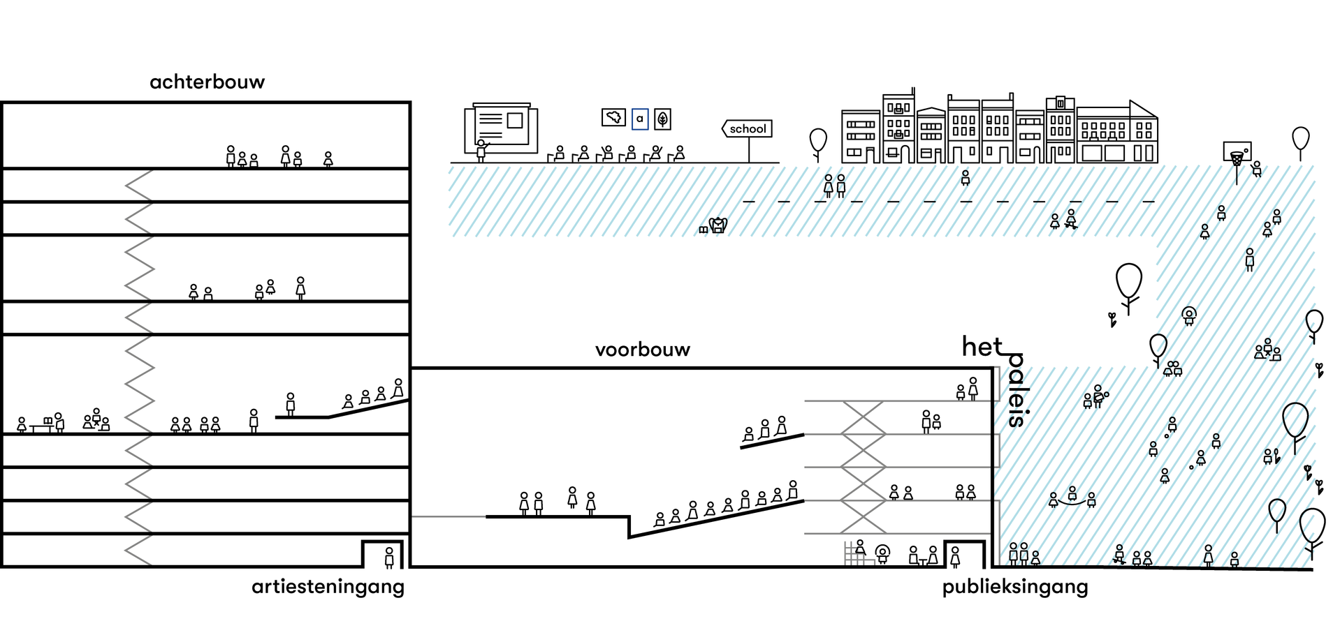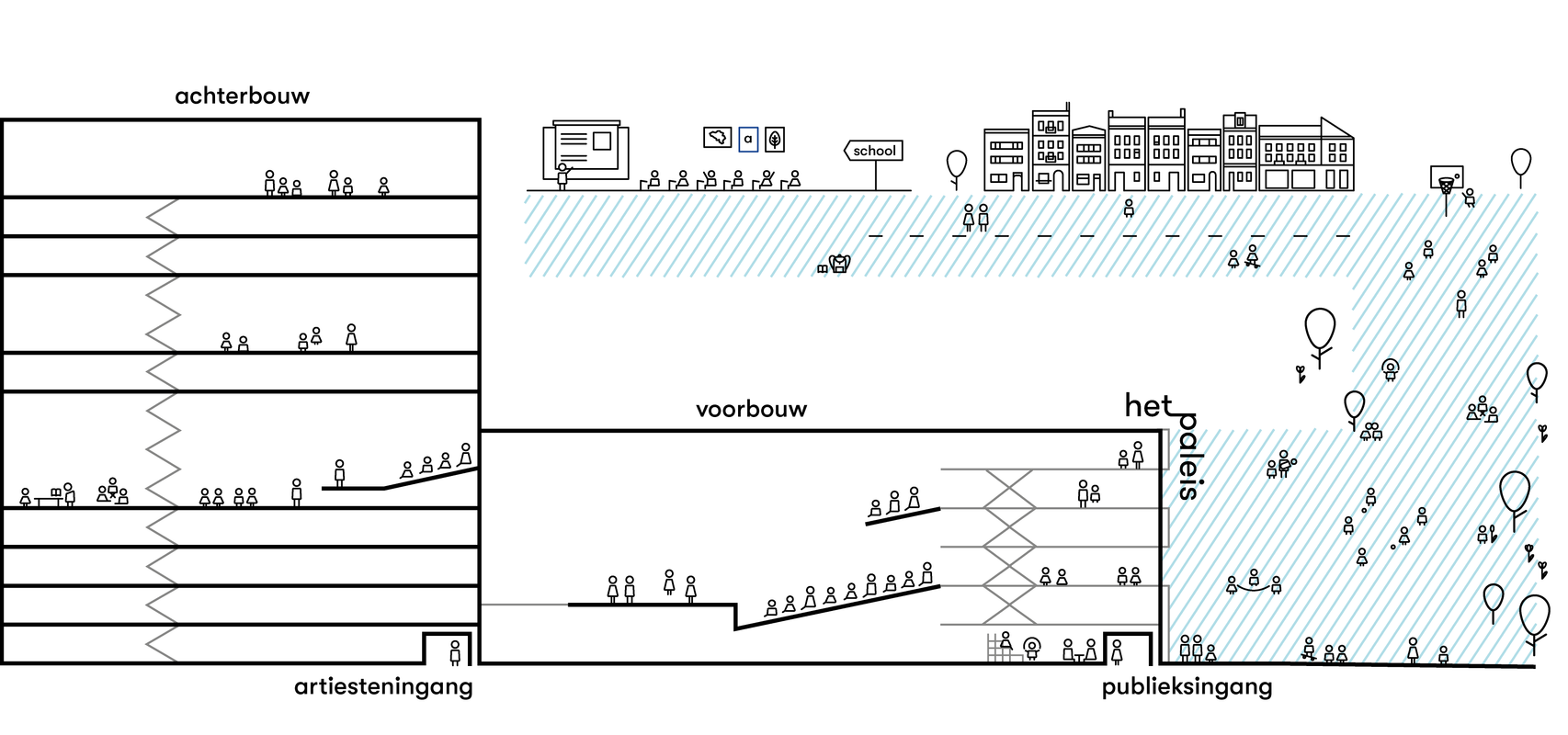 hetpaleis zit diep verankerd in het stedelijk weefsel. Talloze activiteiten in de publieke ruimte, duurzame samenwerkingen met stedelijke partners, participatieve trajecten in wijken. De motor voor een groeiende grootstedelijke gemeenschap.