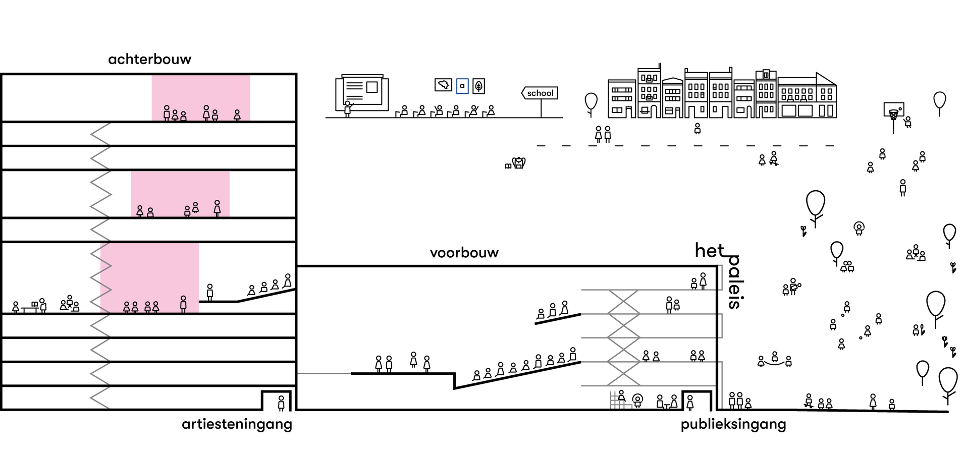 Drie grote ruimtes, verdeeld over het gebouw. Hier wordt gerepeteerd voor producties en participatieve theatertrajecten. De ruimtes worden ook intensief gebruikt door collega-gezelschappen en individuele artiesten.