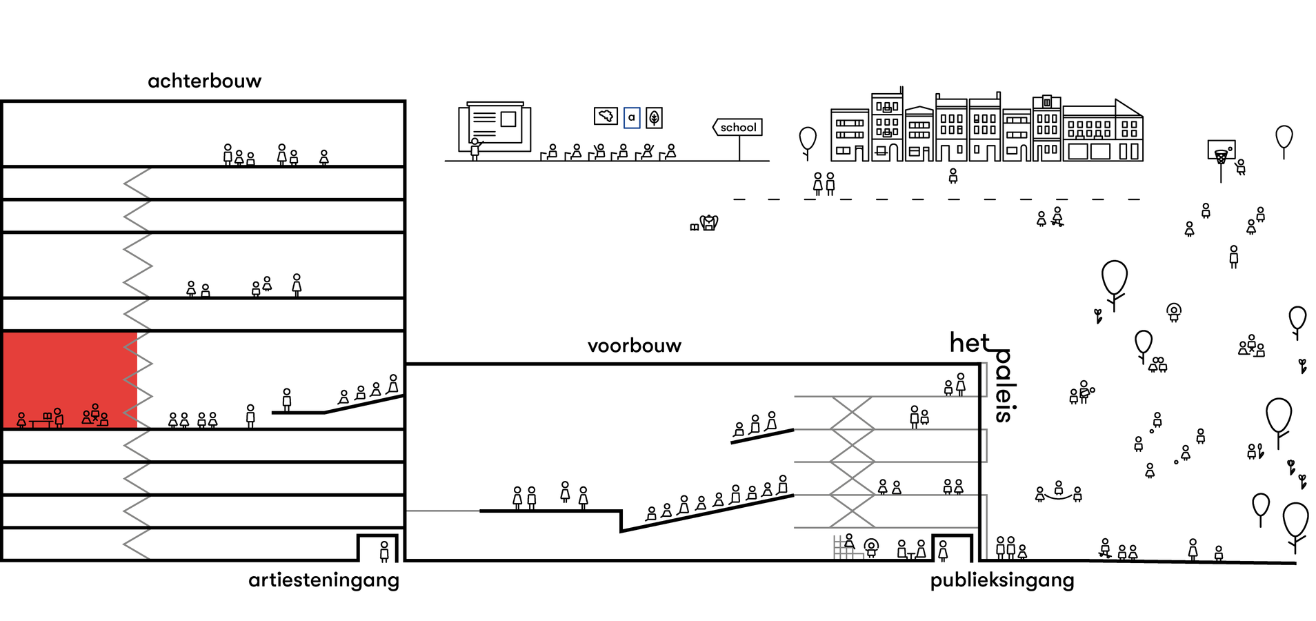 Een nieuwe plek voor een gloednieuwe werking. Artiesten met uiteenlopende achtergrond en discipline doen artistiek onderzoek en ontsluiten dat voor een specifiek publiek. Het is voor hen vaak een eerste kennismaking met het jonge publiek.