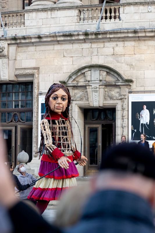 Op vrijdag 8 en zaterdag 9 oktober kwam Little Amal, een reuzenpop die een Syrisch vluchtelingenmeisje verpersoonlijkt, naar Antwerpen. hetpaleis zorgde samen met de schoolkinderen van De Kleine Jacob voor een warm welkom op vrijdagavond. Op zaterdag ontmoette Kleine Amal de Reuskens van Borgerhout.