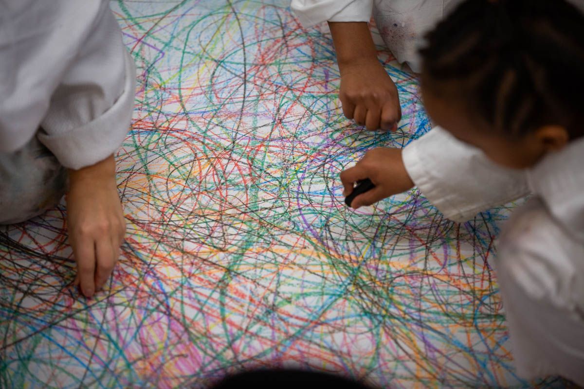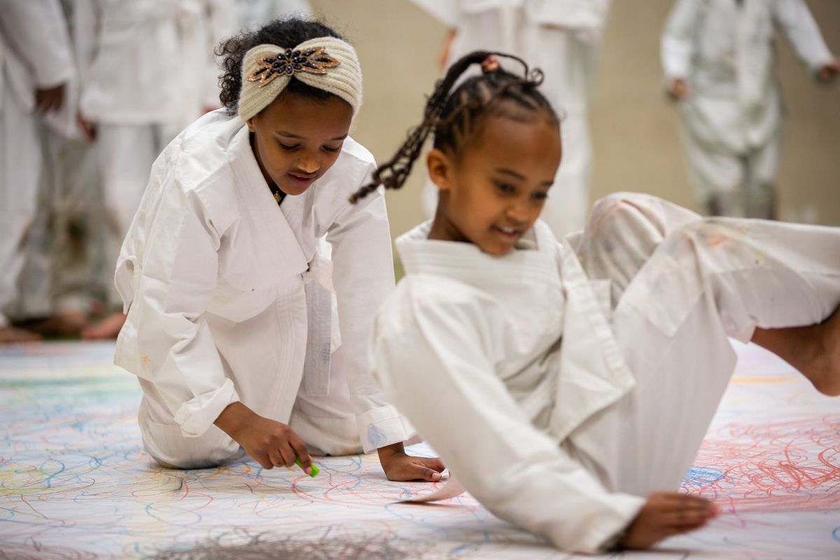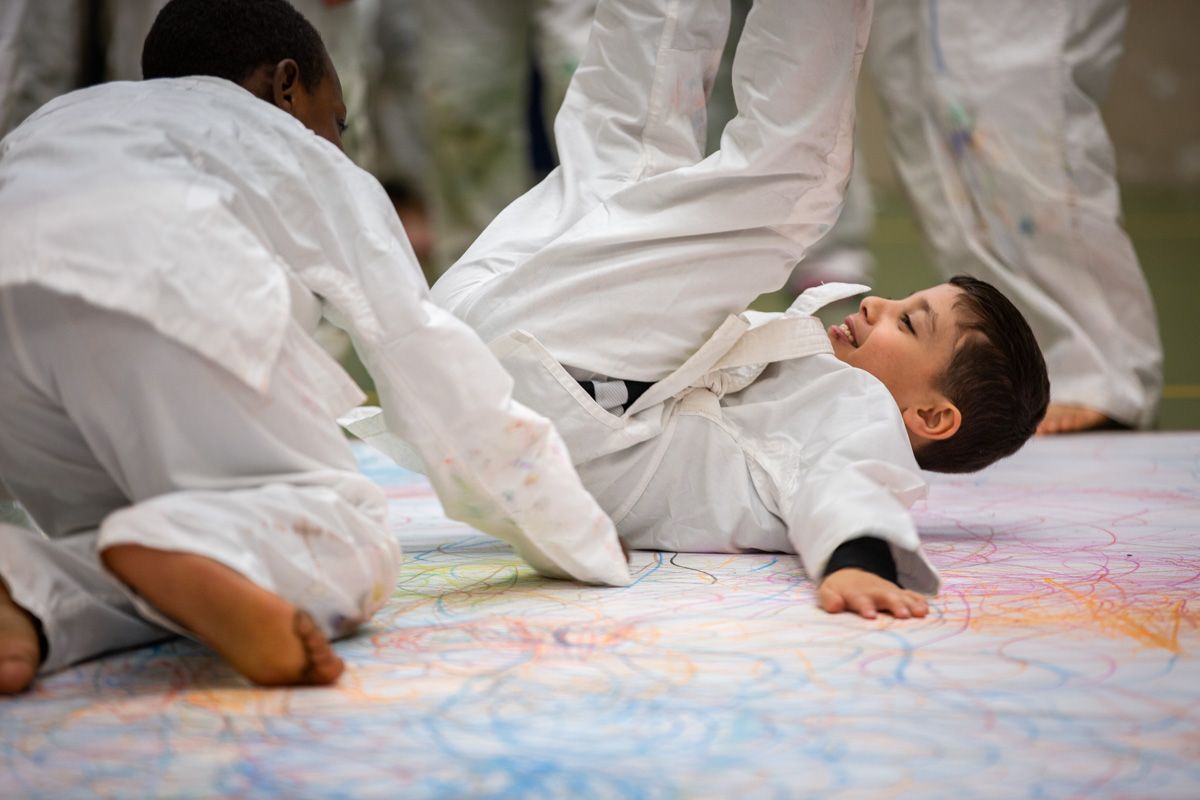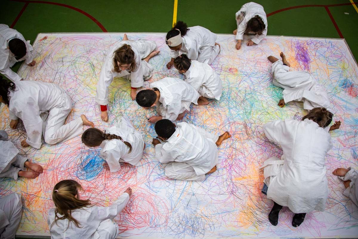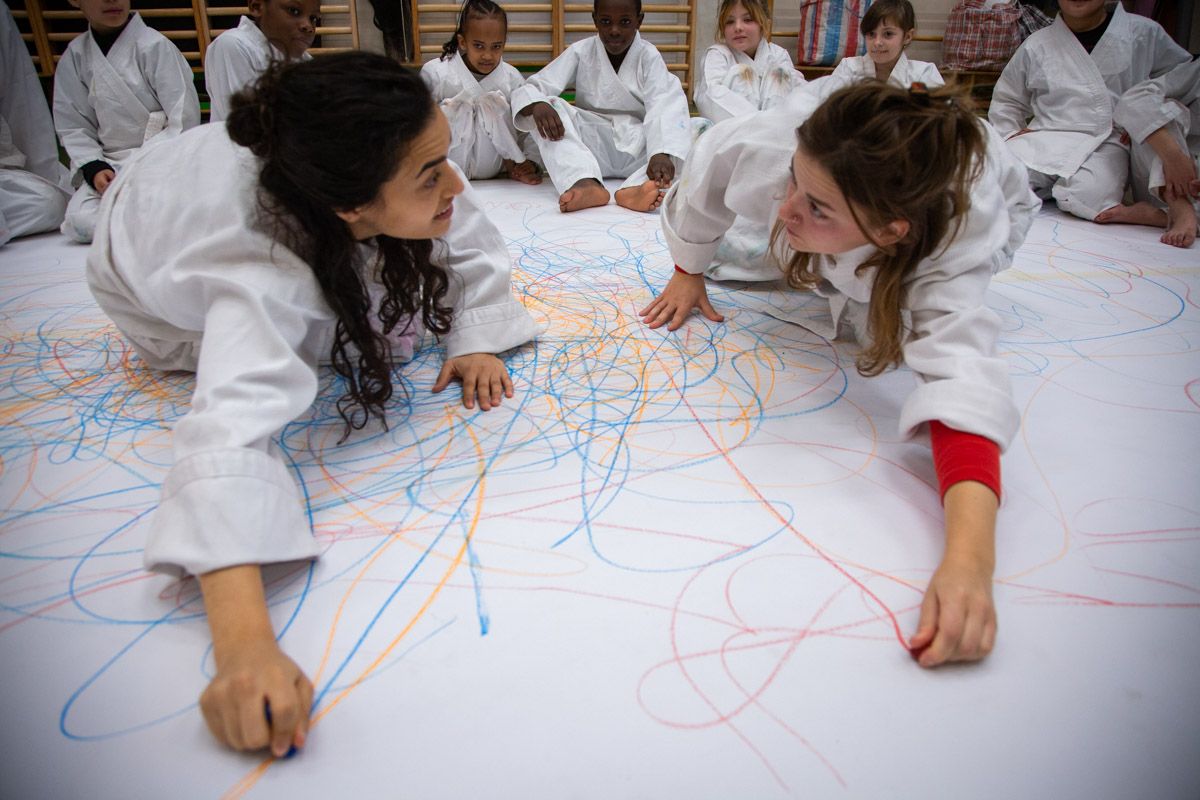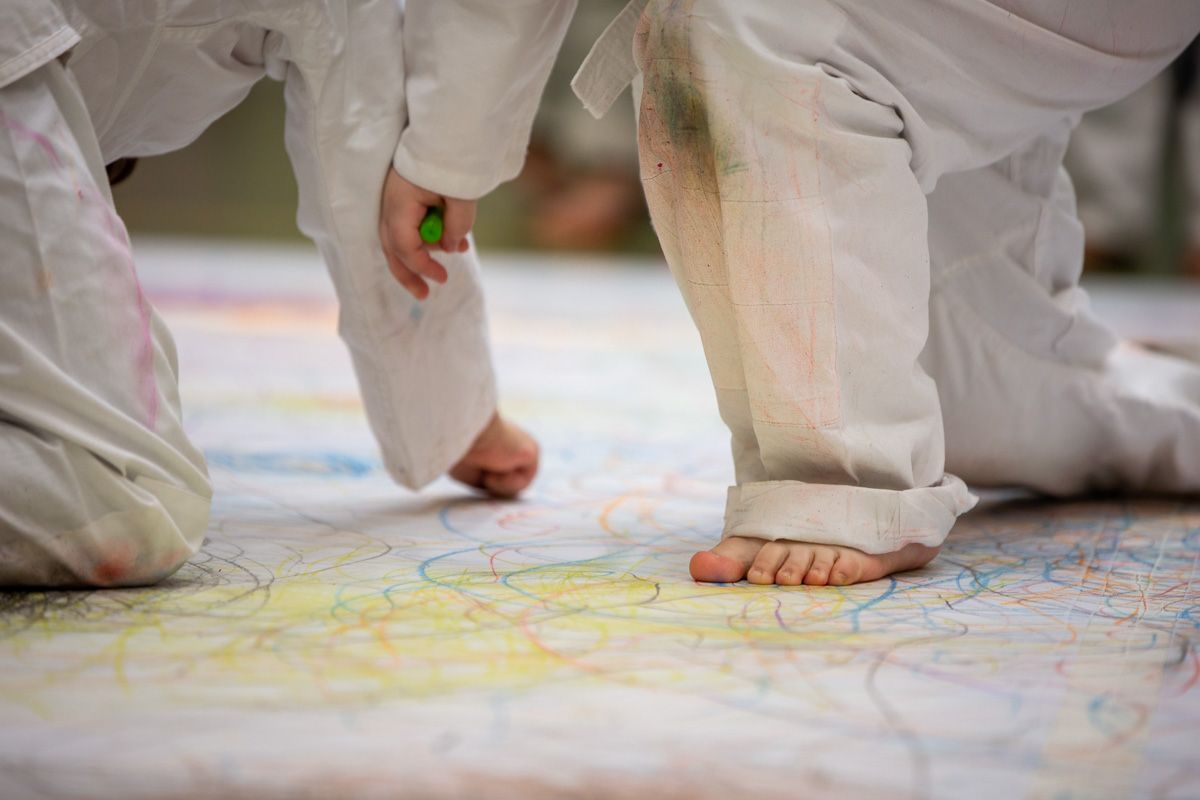 In de schoolworkshop WASCO! staat de kunst van het bewegen centraal. Of was het nu net de beweging in kunst? Dans als een vorm van tekenen en krabbelen. Van kliederen en kladderen. Van smossen of heel precies schetsen. Met je armen, benen, hoofd of heel je lijf. Een lijn van je oor naar je linkervoet of een kronkel van je rug naar je neus.